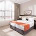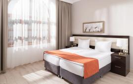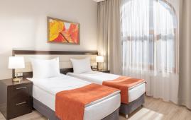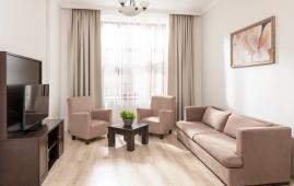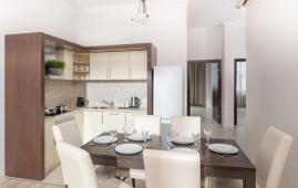 Просторные апартаменты для большой семьи или компании друзей: три спальни, гостиная с кухней, обеденной зоной и диваном для отдыха.