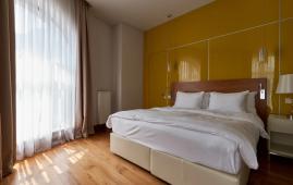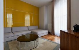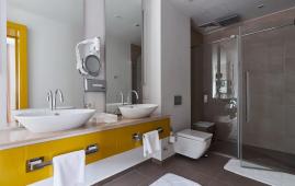 Большой люкс с панорамным видом на горы. Этот номер располагает спальней с двуспальной кроватью и гостиной с мягкой зоной для отдыха и столовой. В ванной комнате предусмотрены необходимые косметические принадлежности, а в гостиной – чайная станция и кофемашина.