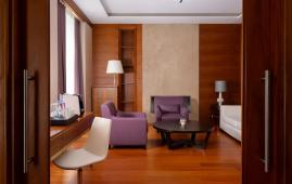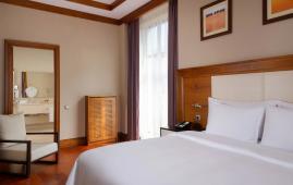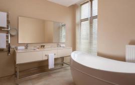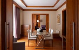 Просторный двухкомнатный люкс с собственной столовой зоной и видом во внутренний дворик отеля. Номер состоит из спальни, гостиной с декоративным камином и мягкой зоной для отдыха и ТВ, столовой зоны, рассчитанной на 4 персоны, гардеробной и дополнительного гостевого туалета. В номере гости могут воспользоваться личной капсульной кофемашиной. На террасе номера располагается уютная зона отдыха с шезлогнами.