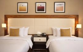Просторный номер с видом на улицу или во внутренний двор отеля. В номере установлены две односпальные кровати. Пространство номера разделено на две зоны, спальню и зону отдыха, оригинальной панелью с зеркалом с одной стороны и телеэкраном с другой. В зоне отдыха расположен диван и кресло с кофейным столиком.