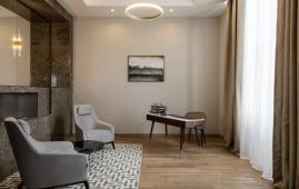 Роскошный президентский люкс для самых взыскательных гостей. Номер состоит из трёх спален, кабинета, гостиной и столовой, гардеробной, а также большой открытой террасы с потрясающим видом. Гости номера могут воспользоваться частным лифтом и собственным выходом на склон – максимальное удобство для покорителей вершин.