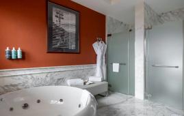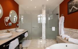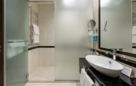 Ванные комнаты с душевой или ванной. Комплектация номера может отличаться от представленной на фото.
