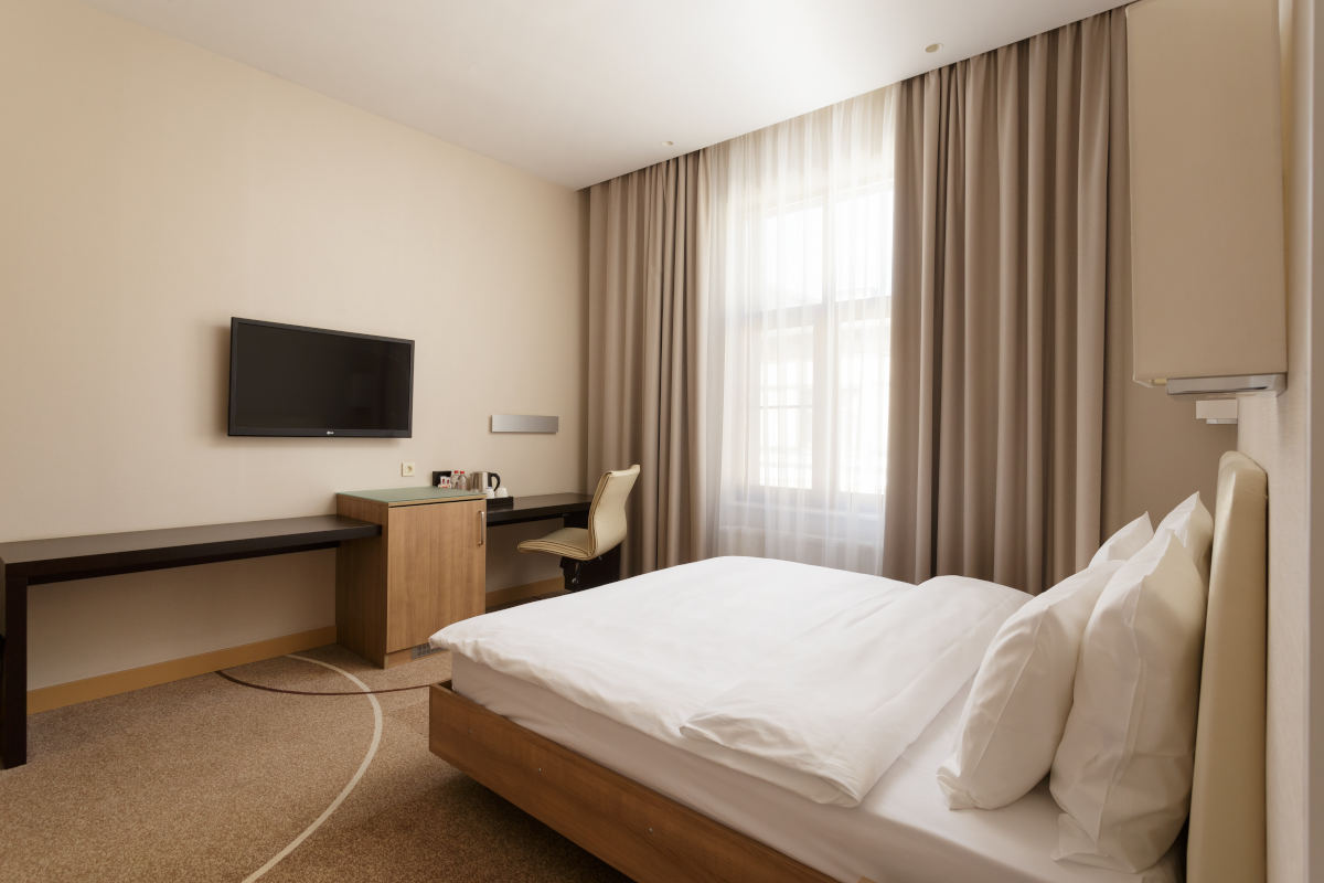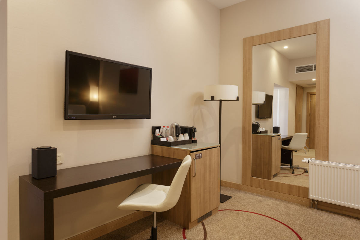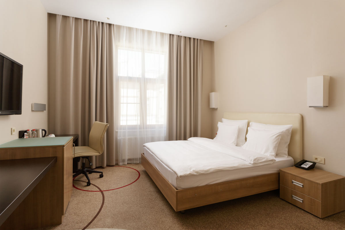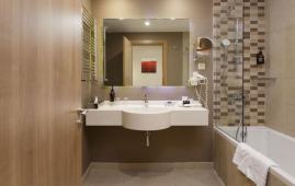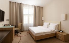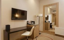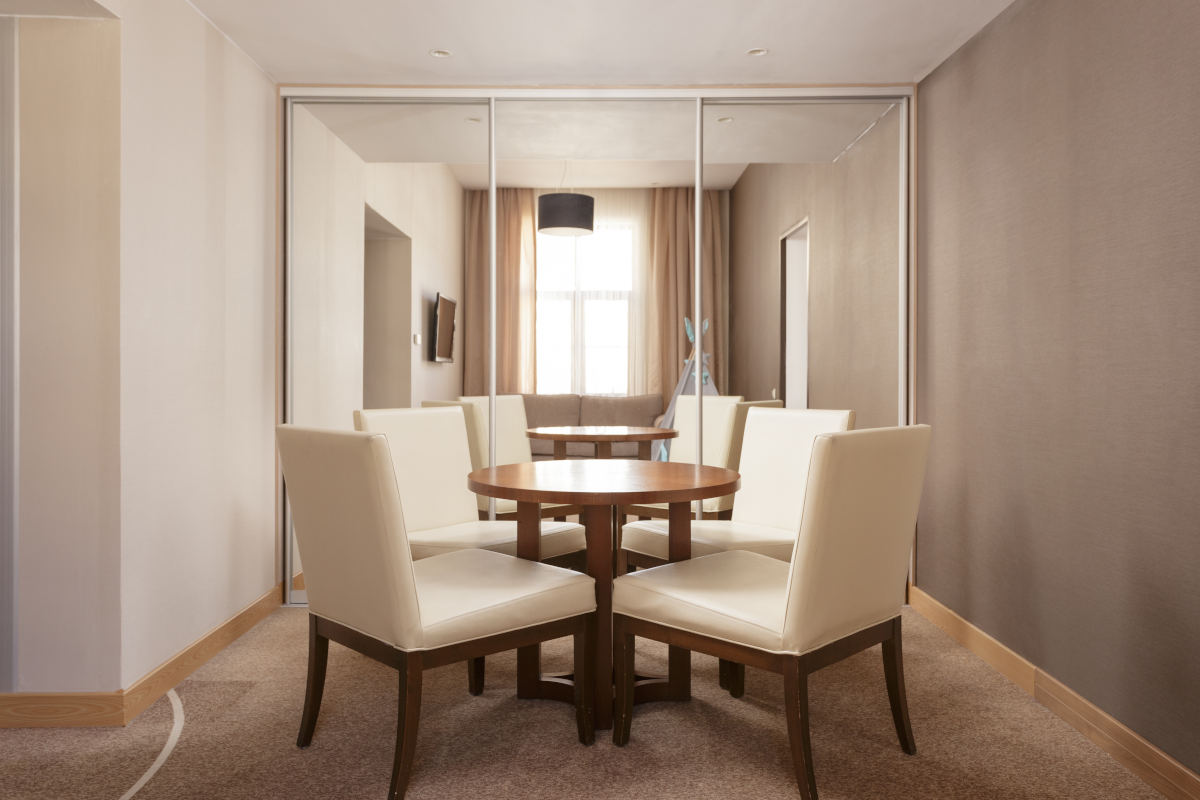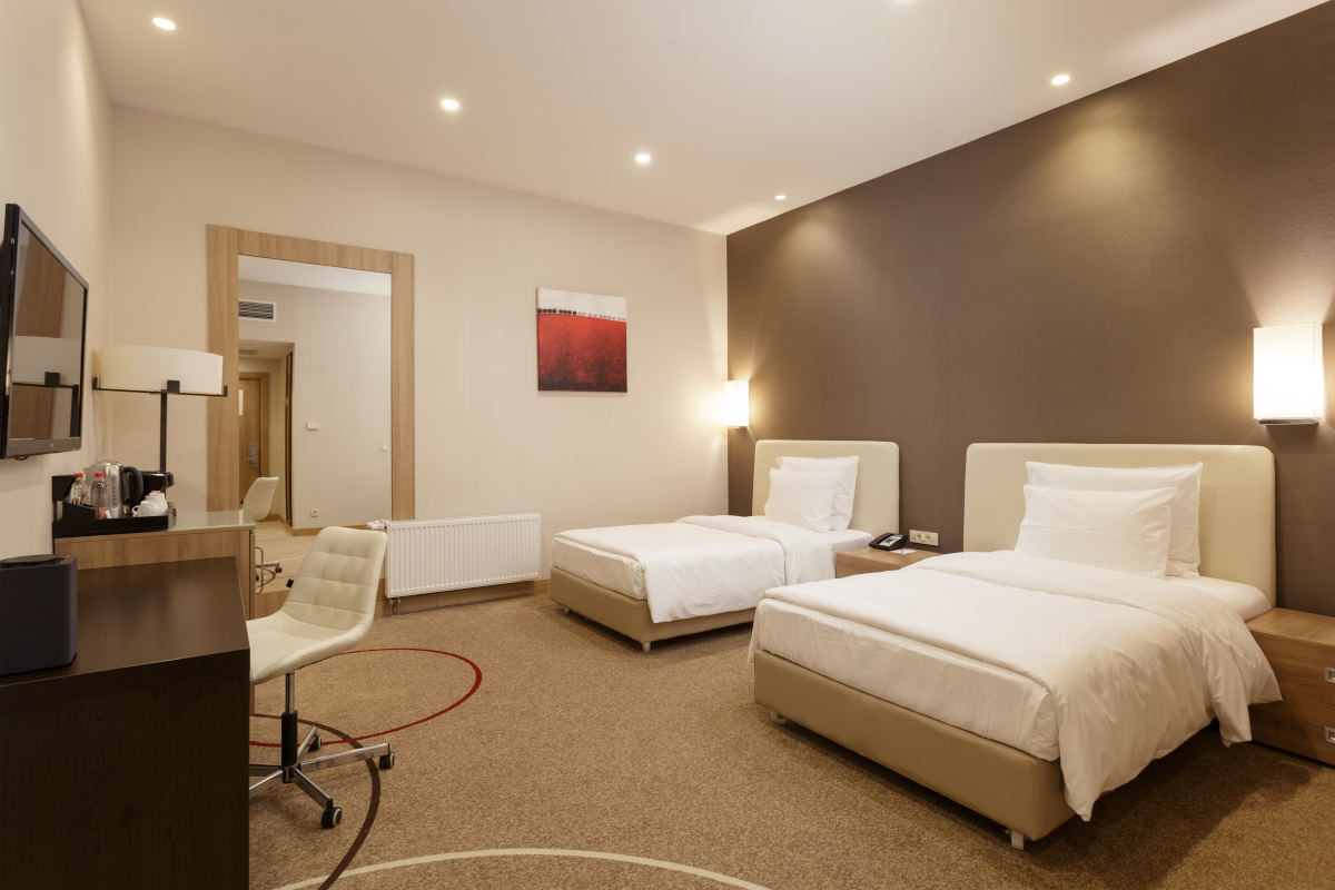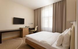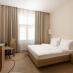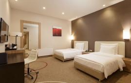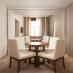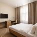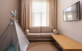 Большой семейный номер с двумя спальнями и гостиной: в первой спальне установлена 1 большая кровать, во второй - 2 полутороспальные кровати. В гостиной располагается мягкая зона для отдыха с раскладным диваном и обеденная зона. Без вида на горы.