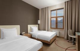 Улучшенный номер с прекрасным видом на горы, двумя раздельными кроватями и удобной рабочей зоной. Для гостей номера предусмотрена чайная станция, а в ванной комнате – фирменная косметика. Дополнительное место в номер не предоставляется.