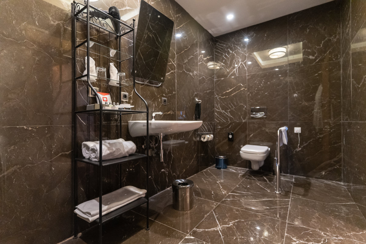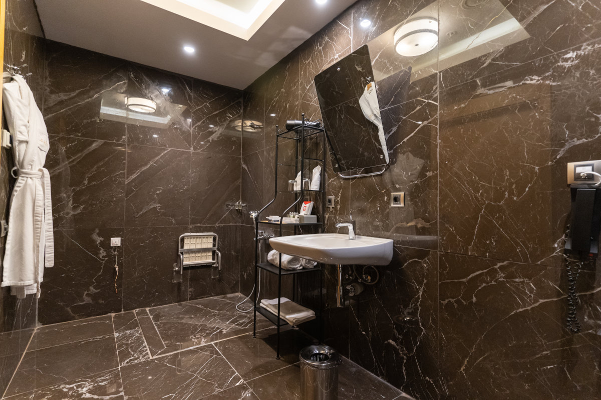 Просторный однокомнатный номер, который предусматривает все стандарты для комфортного проживания маломобильных гостей.