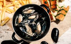 Попробуйте мидии в трёх разных соусах: том-ям, сырно-сливочном и томатном. Моллюски, приготовленные по специальным рецептам, подаются сетами вместе с поджаренными багетами с соусом песто и картофелем фри.